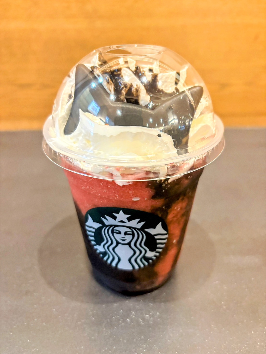 スタバ新作Ⅷ その他 2025/10/10 アサイー ベリー フラペチーノ® 黒猫の耳をモチーフにしたチョコレートかわいいですよね🐱 アサイーが何かよくわかっていませんが、美味しかったです!! 前へ ブログ一覧へ 次へ