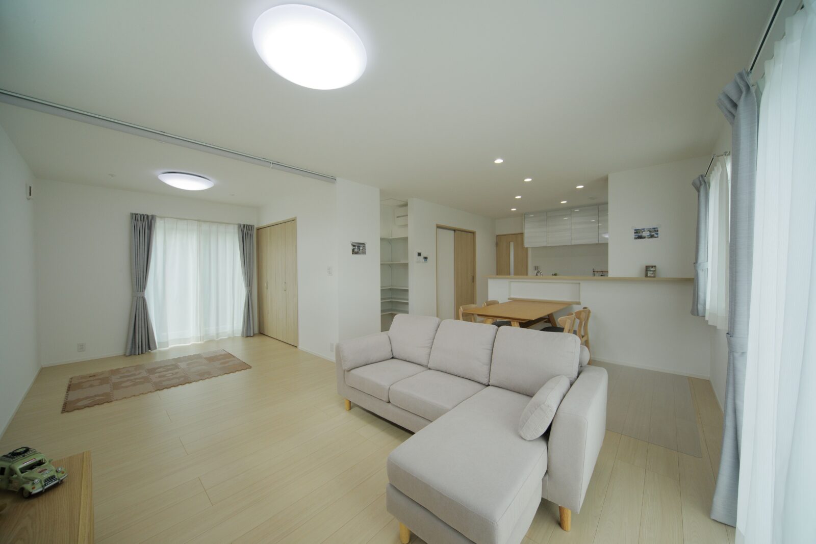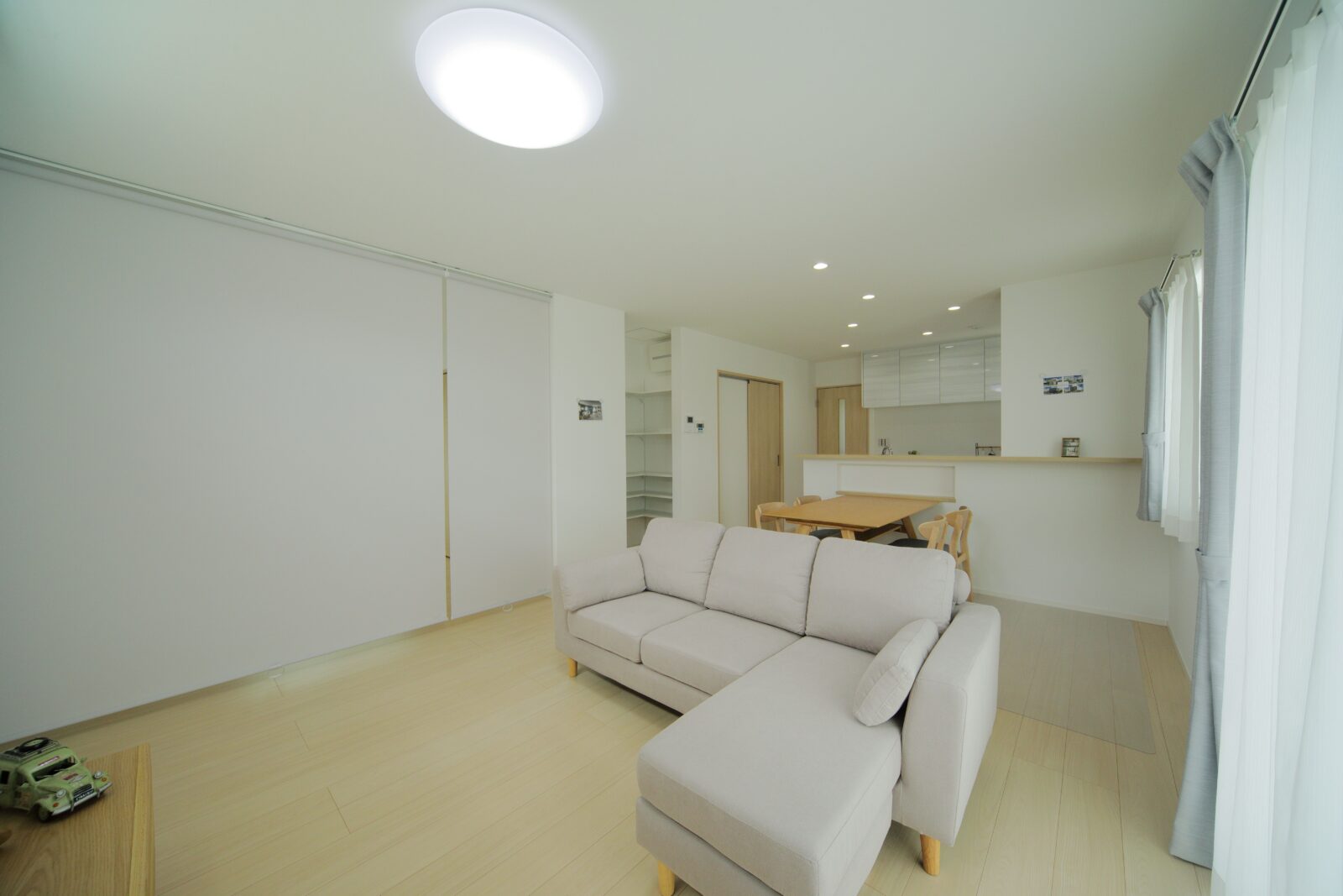 『豊富な収納量できれいが続く』お家 2025/11/21 こんにちは、広瀬産業です 各部屋の収納をはじめ、パントリーや土間収納トイレ収納など上手に活用👍 約20帖のLDK!フリースペースは様々な場面で使用できるので👍 ロールスクリーンで間仕切りもできて便利◎ 光沢のあるホワイトウッド柄のキッチン 清潔感があってとても素敵✨✨ 前へ ブログ一覧へ