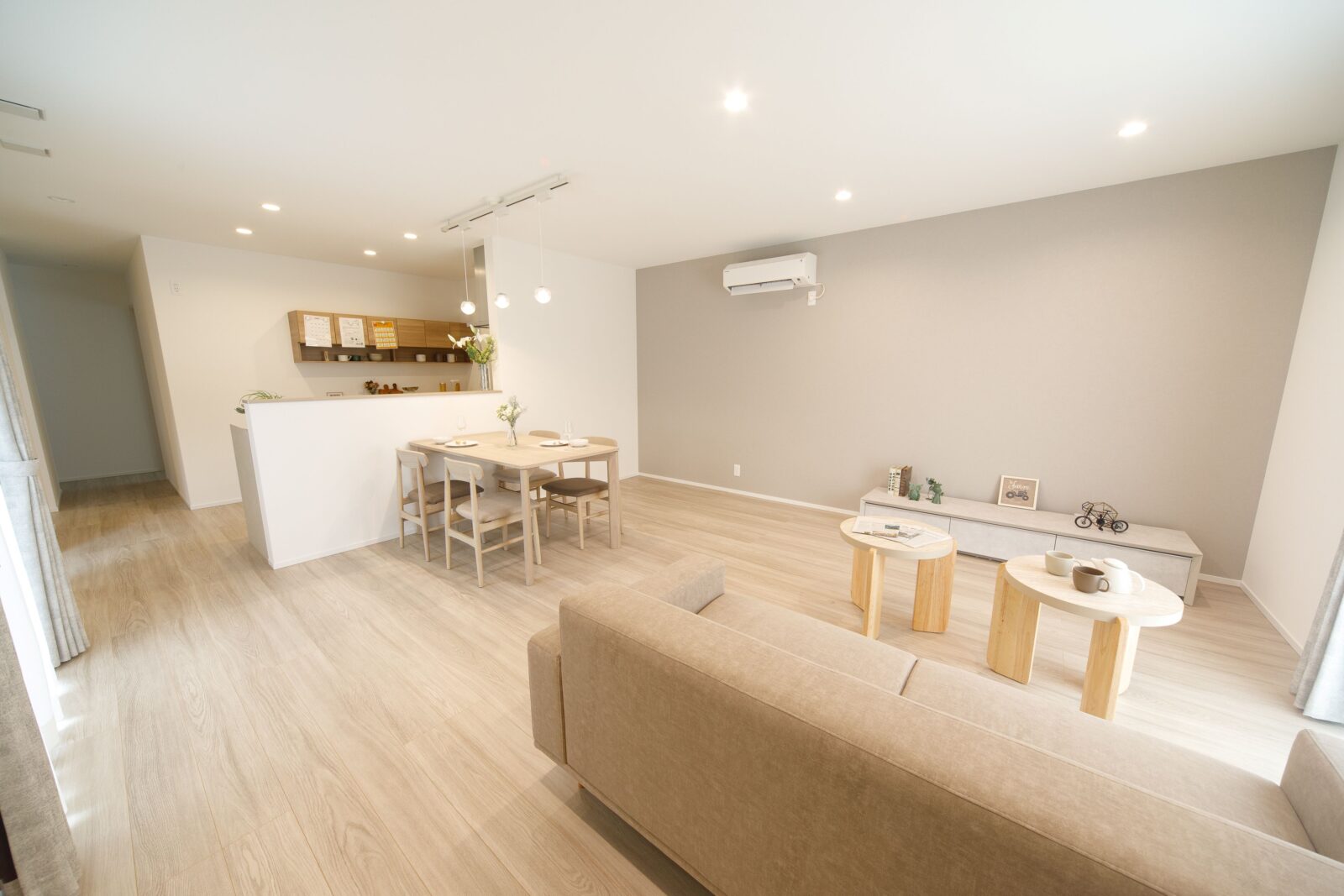 『コの字型 中庭のある平屋』 新築 2025/12/10 こんにちは!広瀬産業です!『コの字型 中庭のある平屋』 コの字型の平屋🏠中庭スペースが生む、生活のゆとりBBQや物干し場など、さまざまな場面で活躍すること間違いなし👍 リビングから中庭の様子も見られるので安心 グレイッシュカラーでまとめたLDK キッチン奥にはパントリー 冷蔵庫も隠して収納👍 前へ ブログ一覧へ