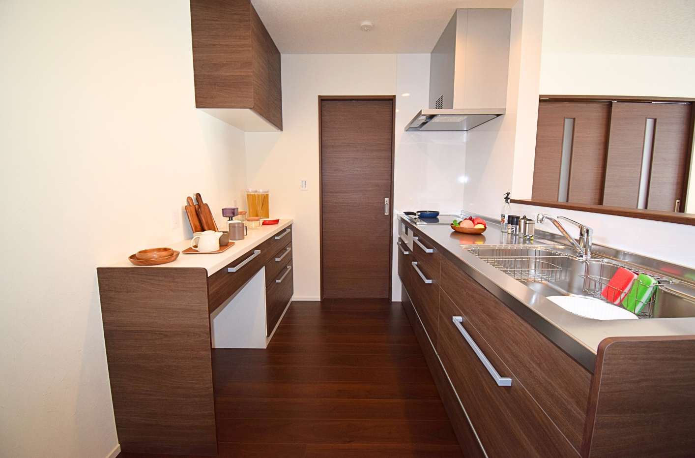 『上質な雰囲気を感じられる』お家 新築 2025/12/23 こんにちは!広瀬産業です! ダークトーンの床材が空間を引き締め、上質でかっこいい雰囲気に。オレンジ色のソファがアクセント✨ 家具1つでお家の印象はがらりと変わります。 キッチンもフロアやドアの色味と合わせて👍 前へ ブログ一覧へ