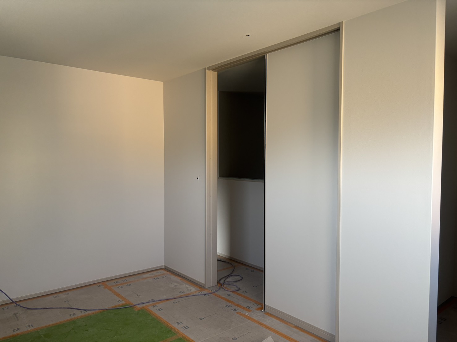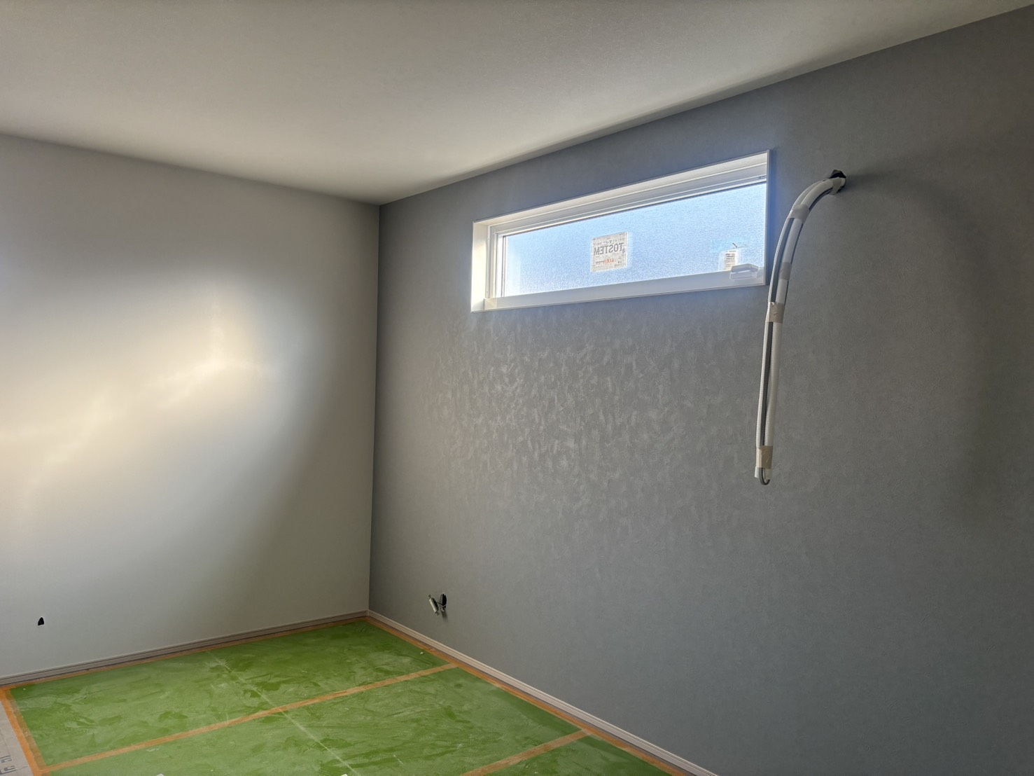 前田新町 続クロス工事 2026/1/16 こんにちは、広瀬産業です 前回の下地処理も終わり、クロス貼りも大詰め! メインクロスは、白よりのグレー アクセントクロスとして、濃いグレーを入れています! 実際は壁全体にクロスを貼るので、サンプルで見る色よりも明るい感じになります 新築で色決めをする際は、ご注意を⚠ 前へ ブログ一覧へ