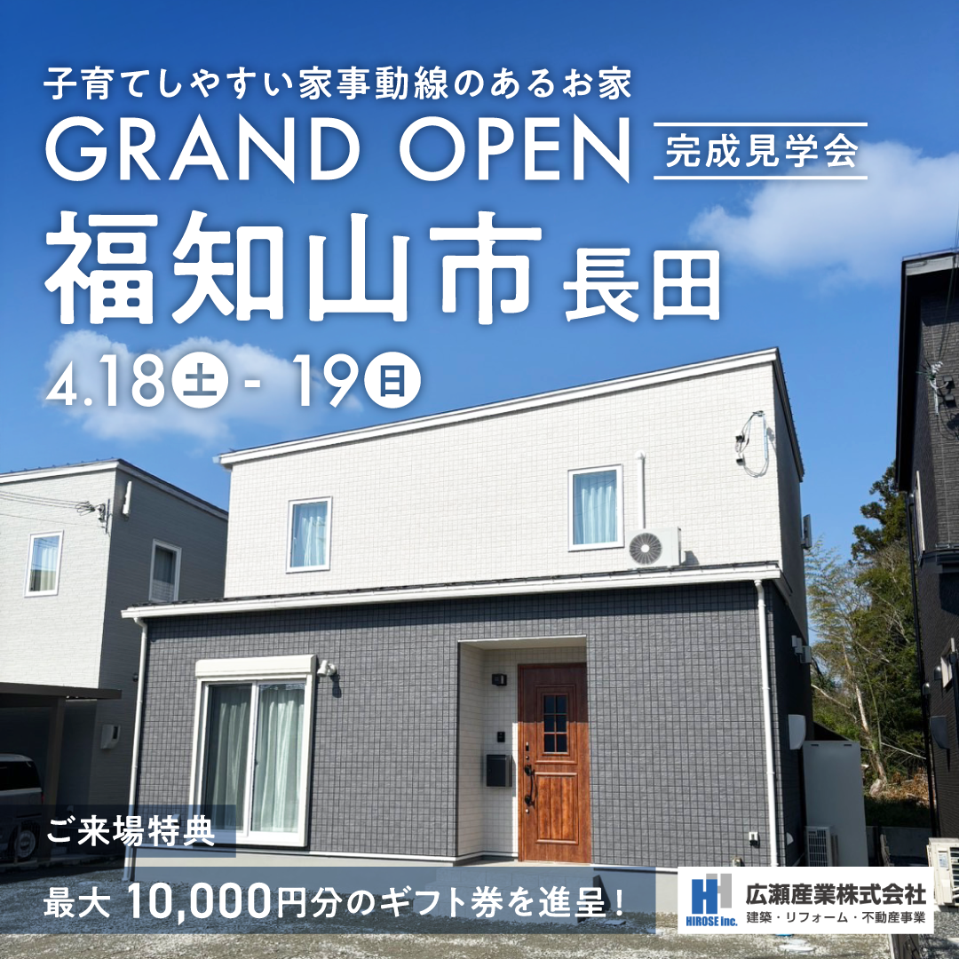 【GRAND OPEN】完成見学会 その他イベント 2026/4/1 EVENT INFORMATION 日付 4月18日〜4月19日 時間 10:00〜18:00(最終受付17時) 場所 京都府福知山市長田448 📍MAPを見る 今すぐ予約をする 見学会のポイント このお家の間取り 今すぐ予約をする 来場特典 ギフト券最大10,000円分プレゼント! 詳細・進呈条件はこちら + 【プレゼントお渡し条件】 WEB予約ページから、ご来場日の前日までにご予約をお願いします 初めて来場頂くお客様1組様につき、ギフト券5,000円分を1回限りで進呈させていただきます 事前アンケートすべてご回答の方 次回(2回目)来場時に事前審査申込で+ギフト券5,000円分に加え、カタログギフトをプレゼントいたします 他社でご契約済みの方は対象外となります ご夫婦またはご家族でご来場の方 ご来場特典のお渡しにはその他諸条件がございます。詳しくはスタッフまで。 ✕ 閉じる 今すぐ予約をする 前へ イベント一覧へ