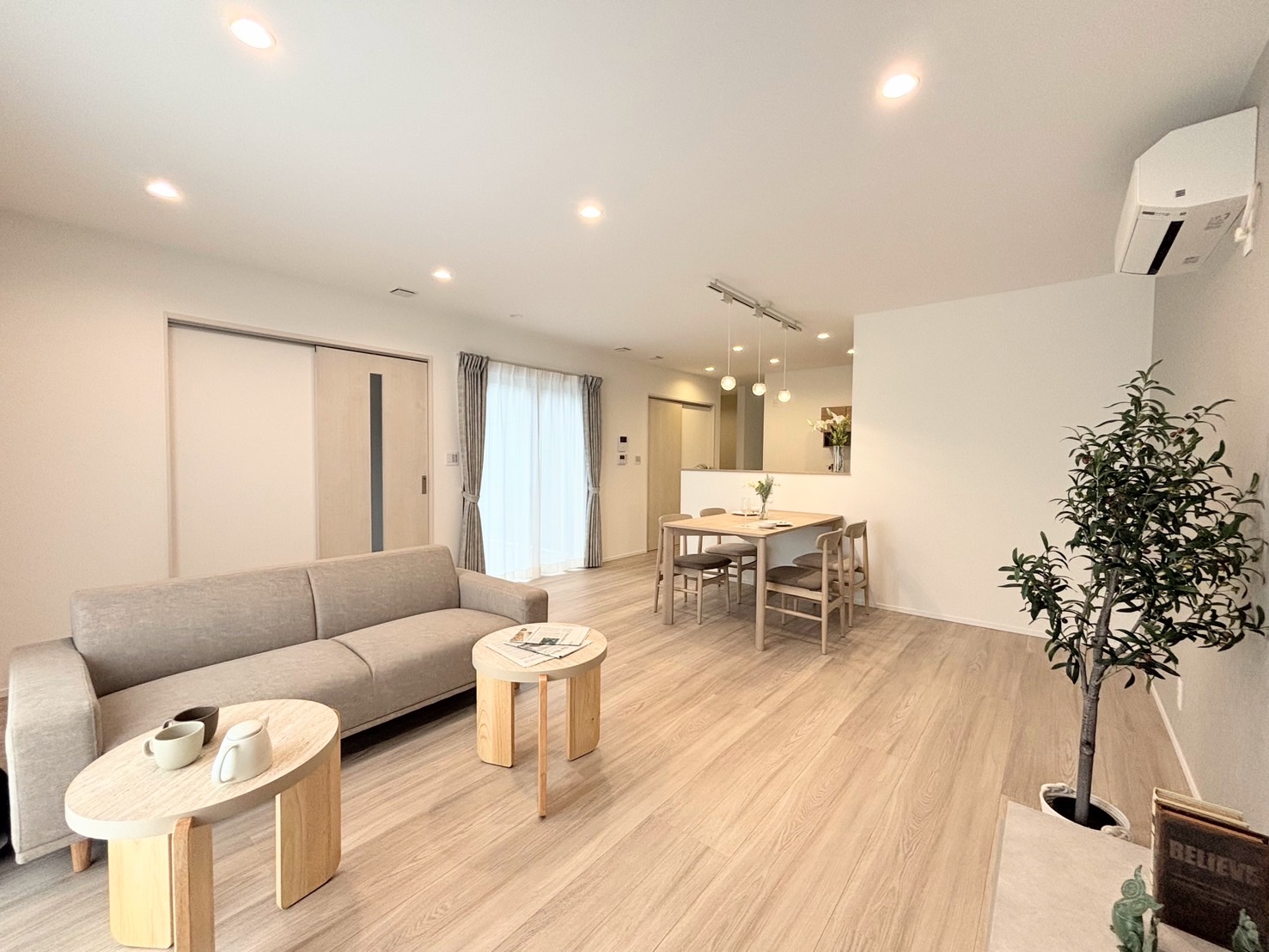 【平屋】石原分譲住宅【販売中】 イベント新築 2025/8/18 【平屋】石原分譲住宅 完成前に商談会を開催いたします。 仕様やその他詳しい情報についてご興味のある方はぜひご予約の上ご来場くださいませ。 2025年9月完成予定。 グレージュ系でまとめた室内は柔らかい雰囲気に 料理中もリビング・ダイニングが見渡せる安心設計 広々4帖のユーティリティは室内干し空間としても使えます 主寝室の奥には3帖のウォークイン付き 天気のいいは中庭で洗濯物も干せます 前へ お知らせ一覧へ 次へ