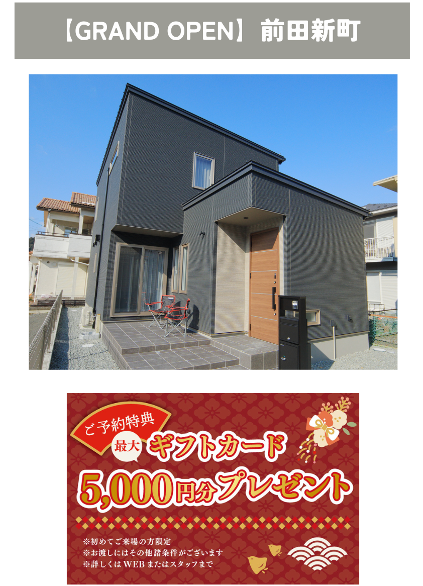 【GRAND OPEN】前田新町 2026/2/2 今すぐ予約をする 今すぐ予約をする EVENT INFORMATION 日付 2月21日~3月8日 時間 10:00〜17:00(最終受付16時) 場所 京都府福知山市前田新町172-3 📍MAPを見る 今すぐ予約をする 来場特典 ギフト券最大10,000円分プレゼント&お肉カタログギフトプレゼント お菓子プレゼント(お子様限定) 詳細・進呈条件はこちら + 【プレゼントお渡し条件】 WEB予約ページから、ご来場日の前日までにご予約をお願いします 事前アンケート+来場後アンケートにご回答の方 初めて来場頂くお客様1組様につき、QUOカード5,000円分を1回限りで進呈させていただきます 他社でご契約済みの方は対象外となります ご夫婦またはご家族でご来場の方 次回(2回目)来場時に事前審査申込で+QUOカード5,000円分に加え、カタログギフトをプレゼントいたします ご来場特典のお渡しにはその他諸条件がございます。詳しくはスタッフまで。 ✕ 閉じる 今すぐ予約をする 前へ お知らせ一覧へ